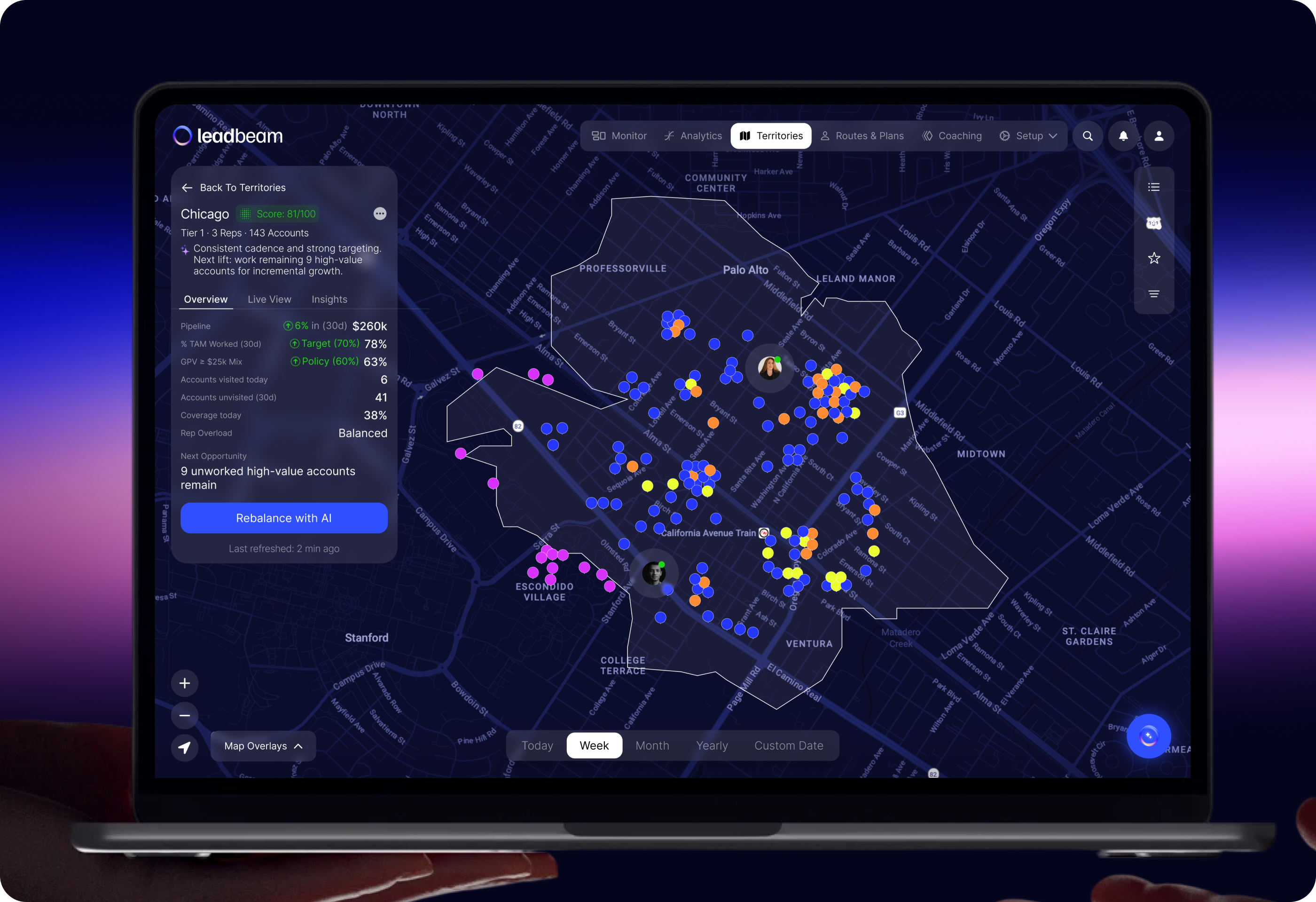 See every territory potential, every gap, every hot spot. Reallocate, expand, or justify the next headcount with real data.